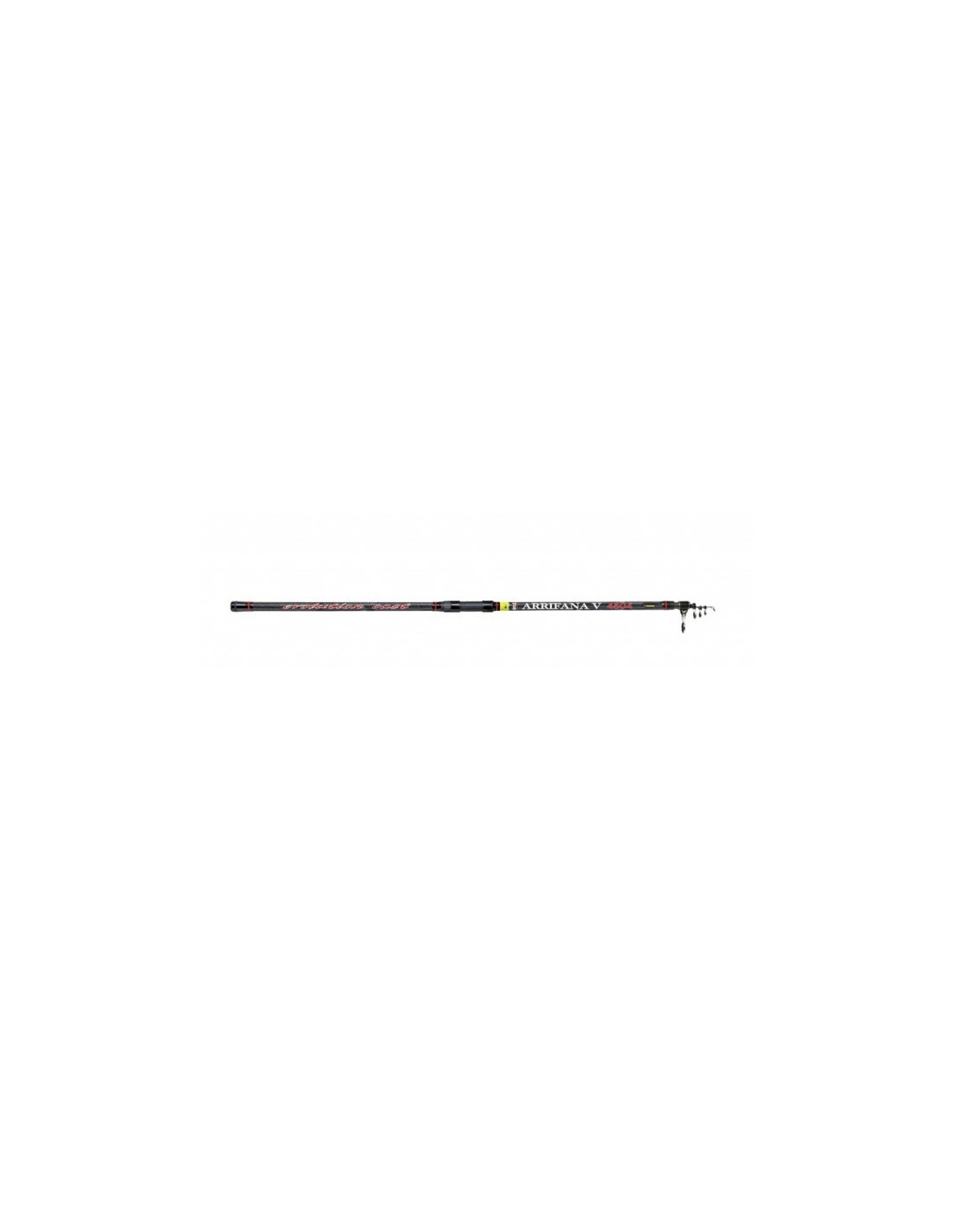 F. Técnica: Tamanho:5.00m Acção:Máx.250g Elementos:4 Tipo de material:Carbono alta Resistência e X-Carbon Yarn Passadores:AntiChoque Porta-carretos: TubularPeso:680gDesde há muito uma campeã de vendas, a ARRIFANA é uma verdadeira cana `todo o terreno` Descrição: . Em carbono de altíssima Resistência, reforçado com X-Carbon Yarn e equipada com passadores antichoque, a ARRIFANA é capaz de desempenhar o mais duro trabalho, para os que pescam muito e muitas vezes. Na versão de 5 metros foi adicionada uma secção, para